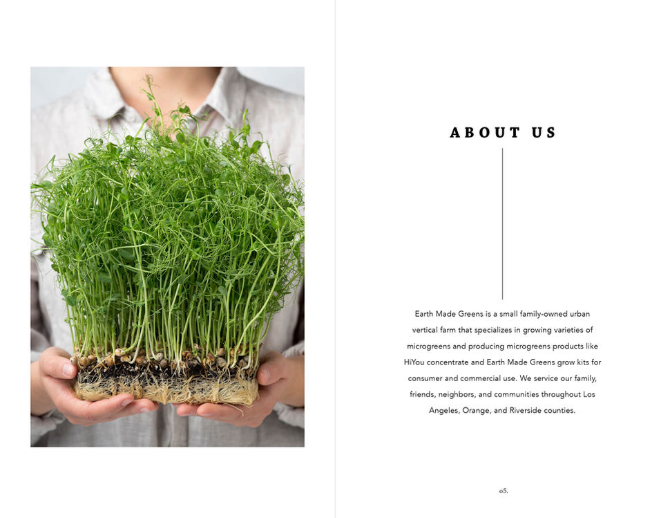 As a key element of the Earth Made Greens rebranding initiative, this booklet was crafted specifically for distribution to customers at events like farmers markets. It serves as an engaging introduction to the brand, offering comprehensive product details. Delving into the myriad health benefits of microgreens, it also underscores the significance of their growth locations.